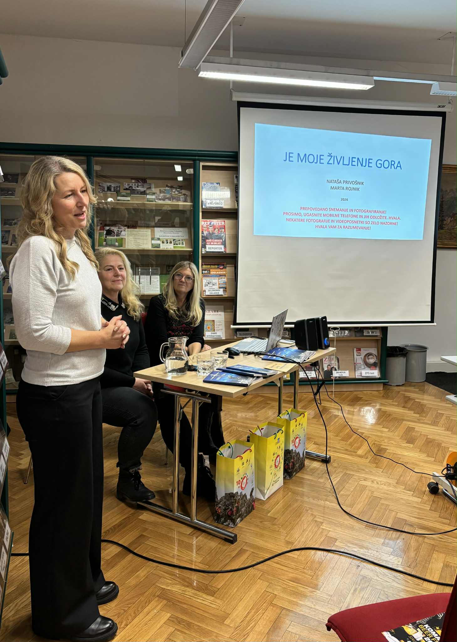 V Knjižnici Josipa Vošnjaka smo v ponedeljek, 12. januarja 2026, gostili Natašo Privošnik in njeno dolgoletno prijateljico Marto Rojnik. Obiskovalcem sta spregovorili o življenjskih preizkušnjah, pogumu in prijateljstvu, ob tem pa predstavili tudi knjigo Je moje življenje gora, ki temelji na življenjski zgodbi Nataše Privošnik in jo je po njenem pripovedovanju zapisala pisateljica Irena Štusej.