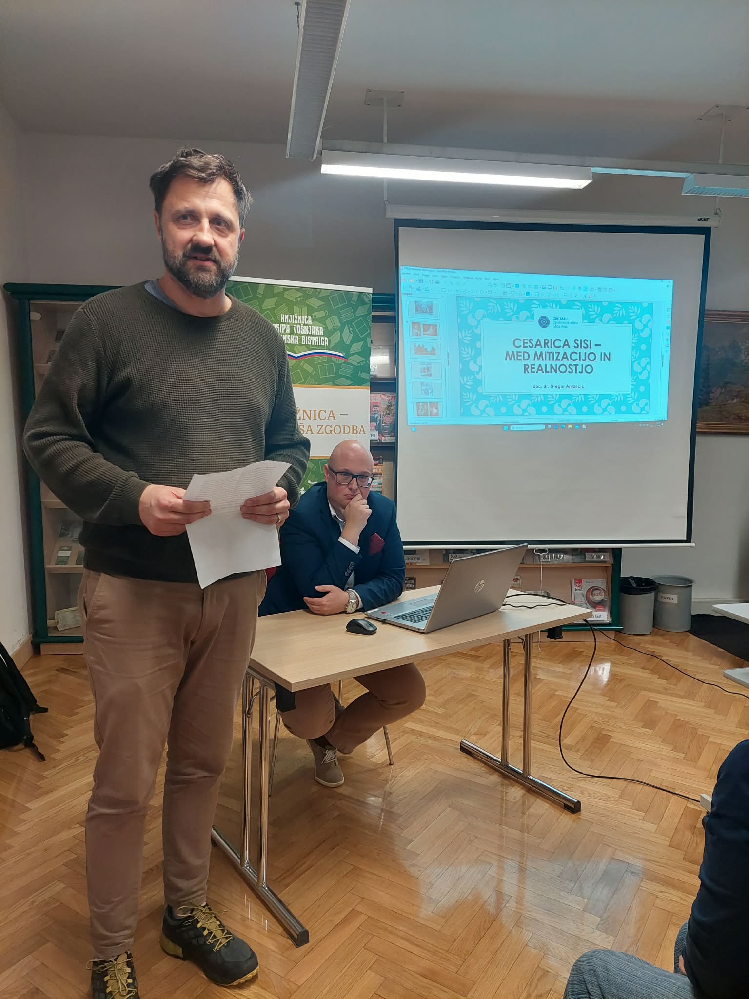 V časopisni čitalnici osrednje knjižnice je bilo v sodelovanju z Zgodovinskim društvom dr. Jožeta Koropca izvedeno izjemno zanimivo predavanje avtorja prve slovenske biografije znamenite cesarice Sisi, doc. dr. Gregorja Antoličiča.